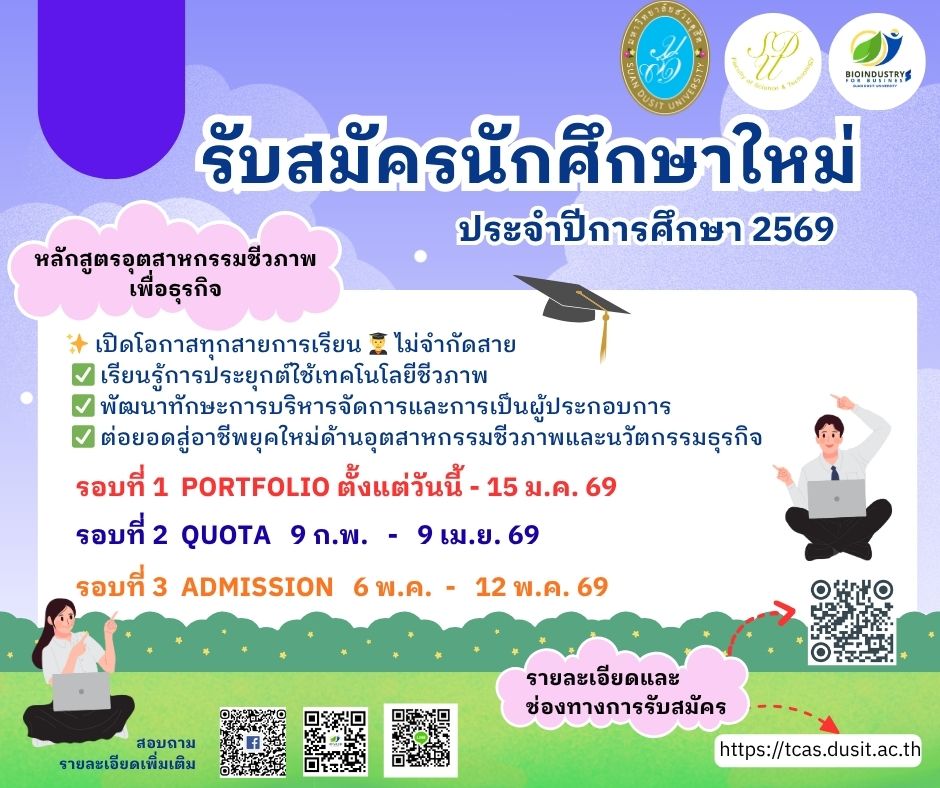 หลักสูตรอุตสาหกรรมชีวภาพเพื่อธุรกิจมุ่งผลิตบัณฑิตให้มีความรู้และมีทักษะด้านอุตสาหกรรมชีวภาพ การดำเนินธุรกิจเกี่ยวกับผลิตภัณฑ์ทางชีวภาพ และการประยุกต์ใช้งานปัญญาประดิษฐ์ (Artificial intelligence: AI) โดยส่งเสริมให้มีการลงมือปฏิบัติจริงและเรียนรู้จากผู้เชี่ยวชาญในสถานประกอบการระดับแนวหน้าของประเทศ เพื่อนำองค์ความรู้